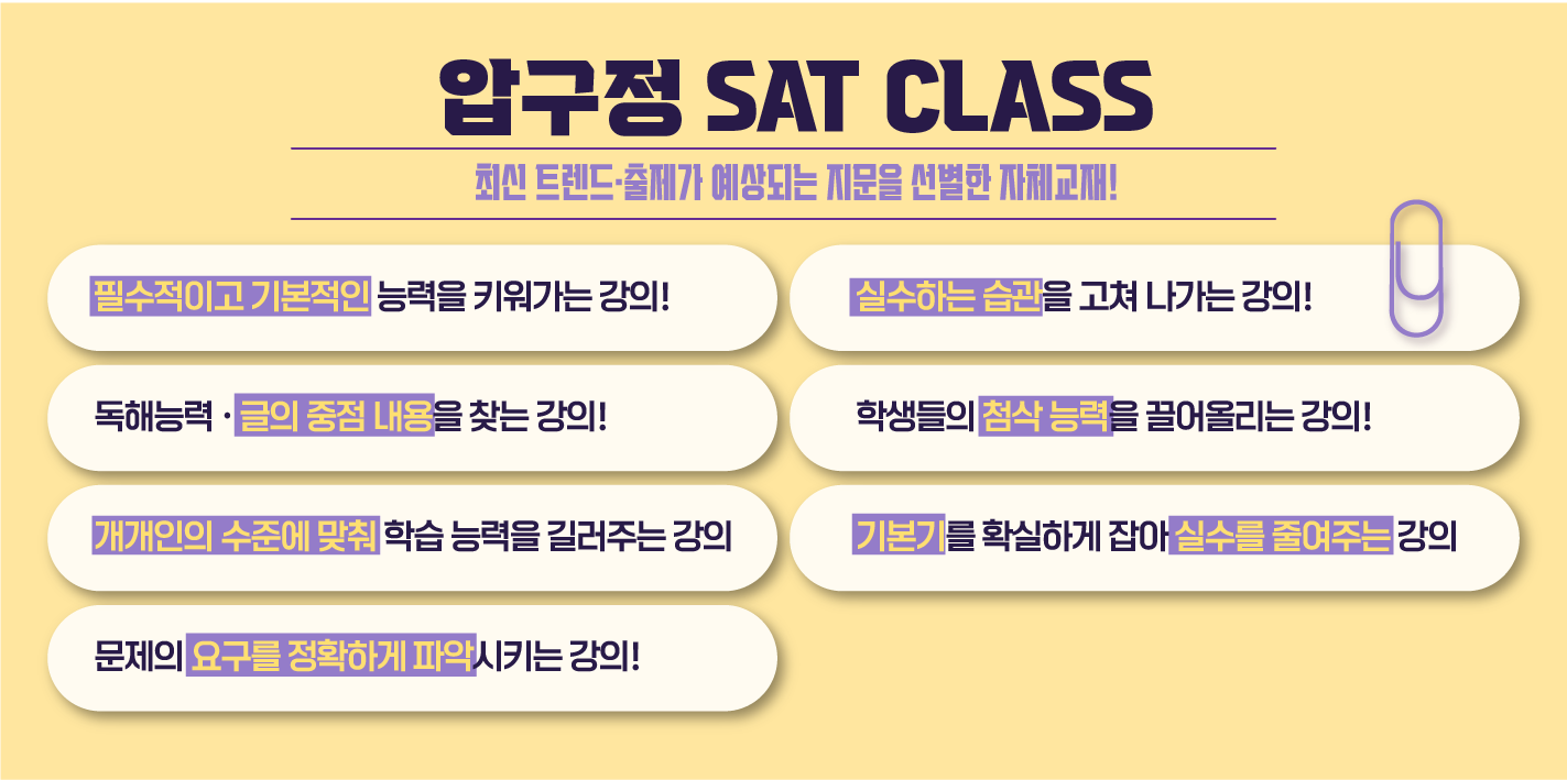 | 2025 SAT MATH / SAT RC / SAT Writing / 압구정 sat학원 (0) | 2025.06.07 |