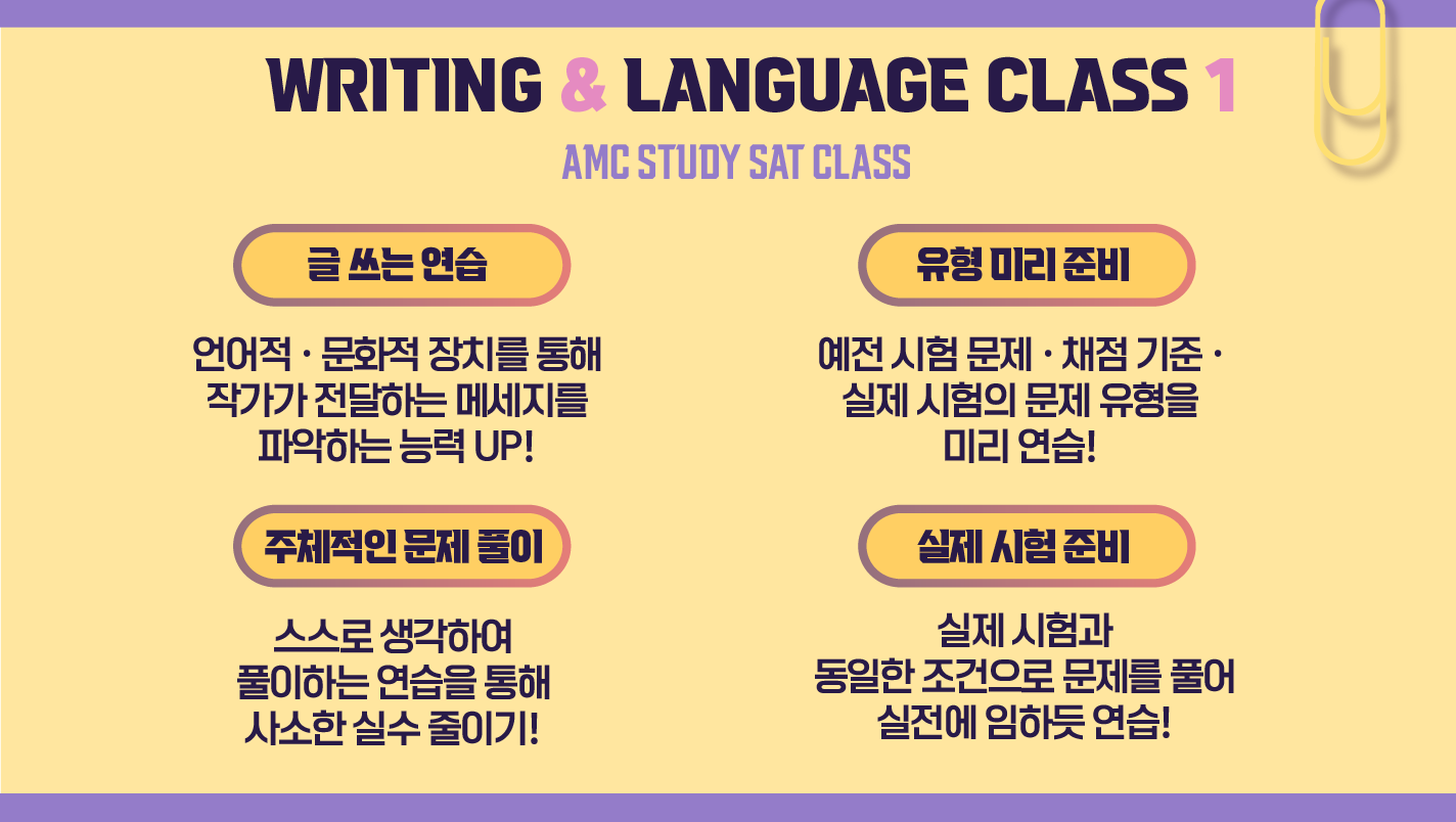 볼수있는 현장중심의 SAT intensive class를 준비하게 되었습니다 SAT의 경우는 SAT RC와 SAT Writing