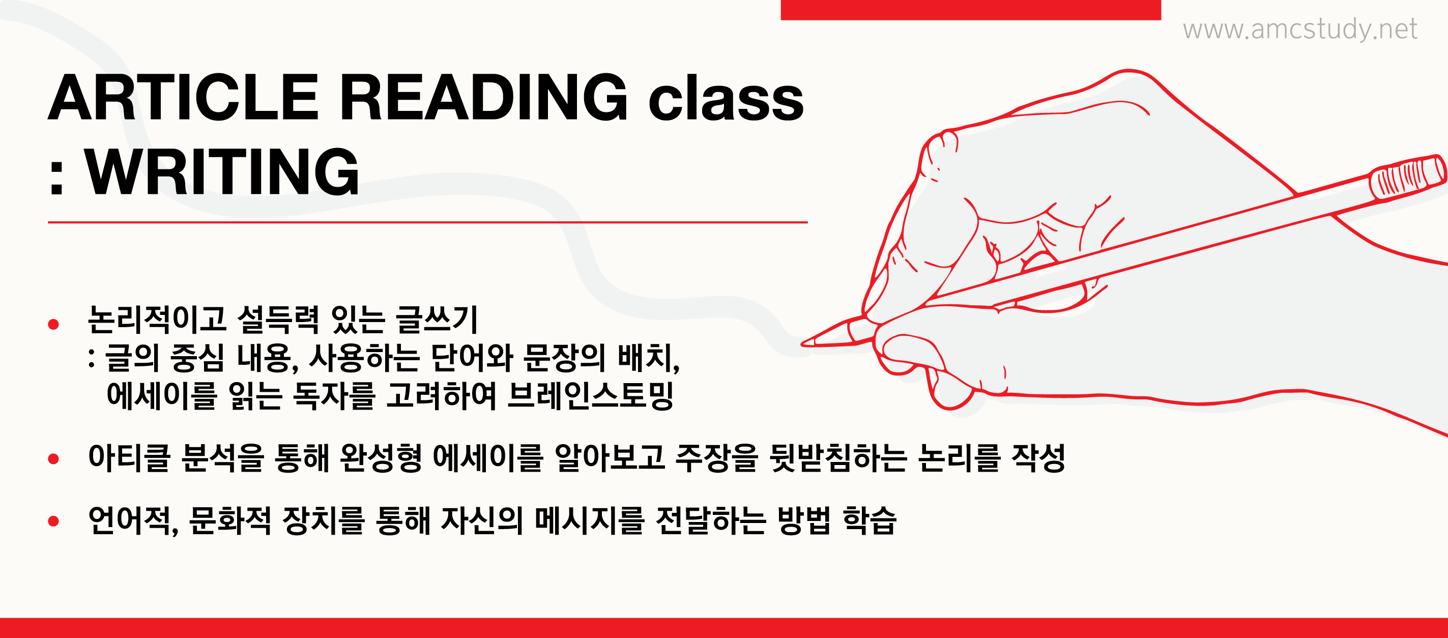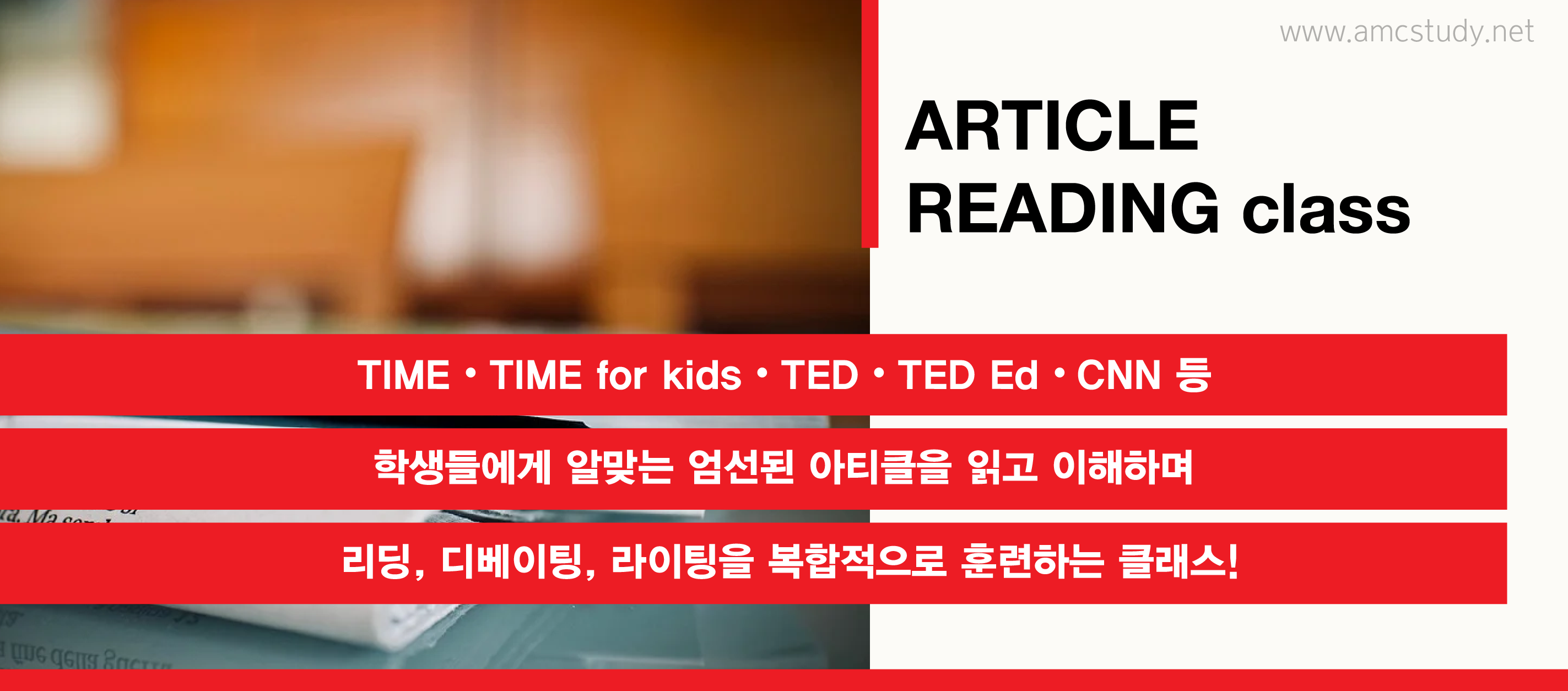 키게 될 것입니다. 저희원의 Article reading class는 국제학교와 외국인 학교의 학생여러분들께서 요청