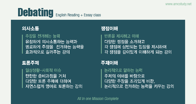 여름방학을 이용하여 RC, Essay, Debate, Vocab, Essay 의 종합적인 English class를 수강하시는 경우는