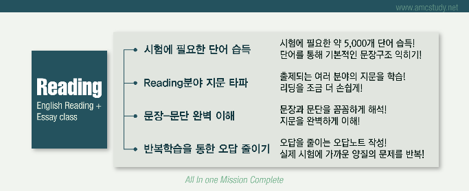 특강을 마련하게 되었습니다. 저희 amc학원의 여름방학 특강 영어과정은 RC, Vocab, Essay, Grammar