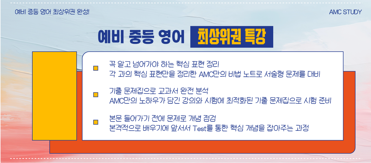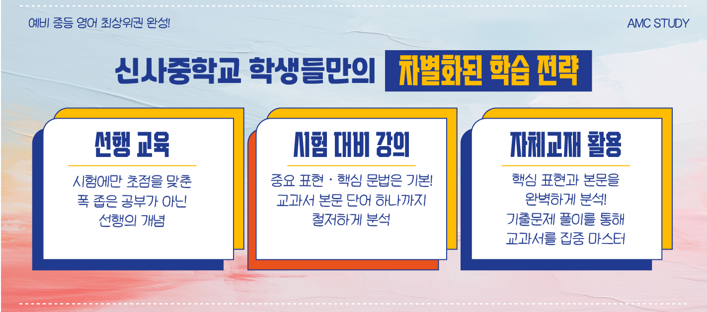 한 배경의 신사중학교의 내신준비반과 예비중종합반 그리고 신사중1학년 특강영어를 위해서 5가지의