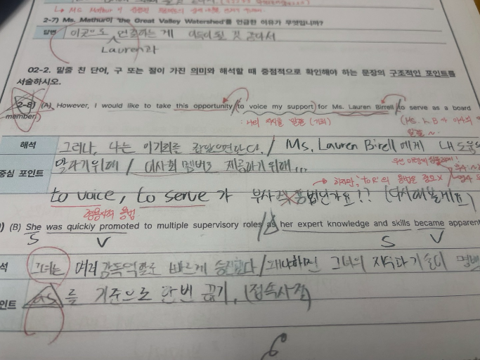 영어로 바라볼 수 있도록 영어어휘, 영문법, 영어독해, 구문분석과 본인의 생각을 영어로 쓸 수 있는