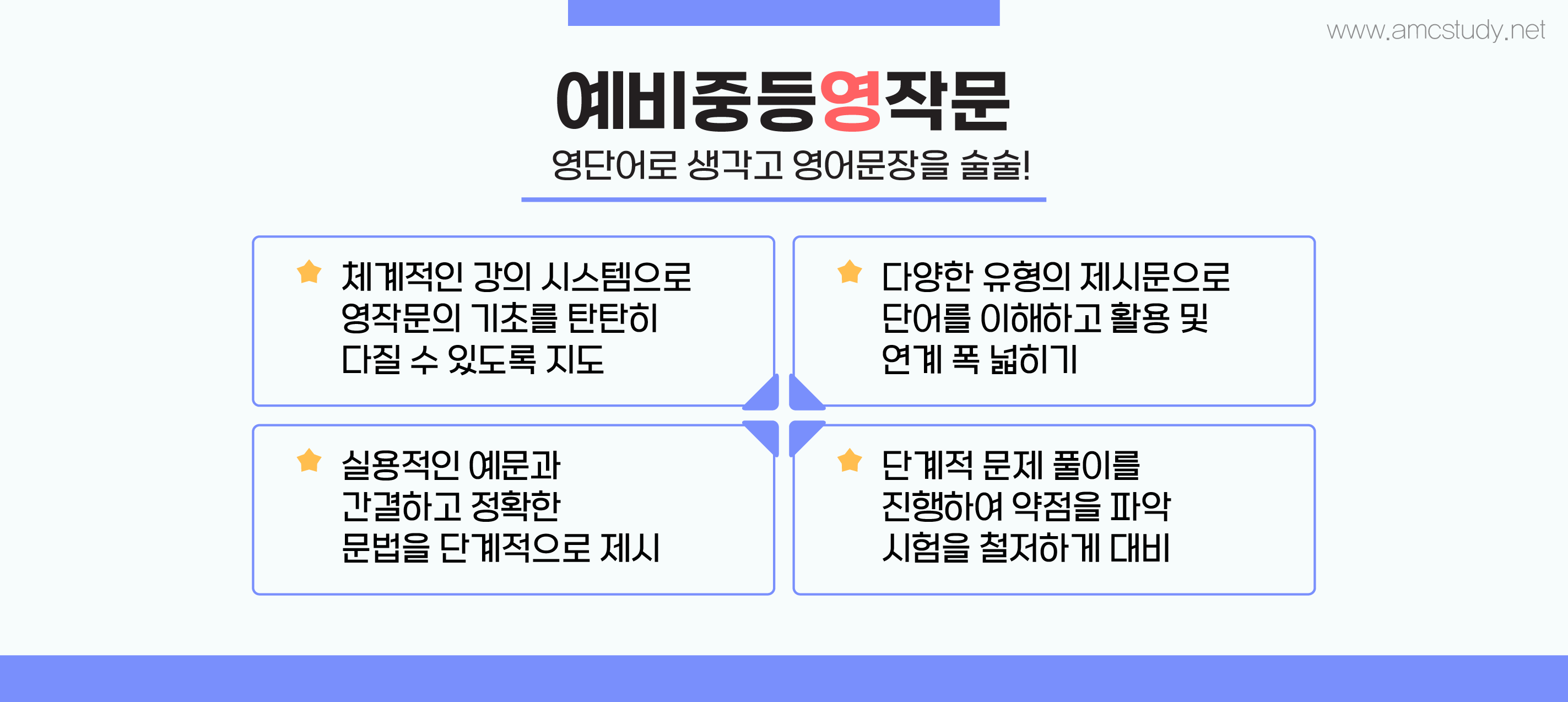 과 영어어휘 그리고 최근 중등과정 수업에서 가장 강조되는 특징인 문장쓰기와 영어 작문 능력을 키우는