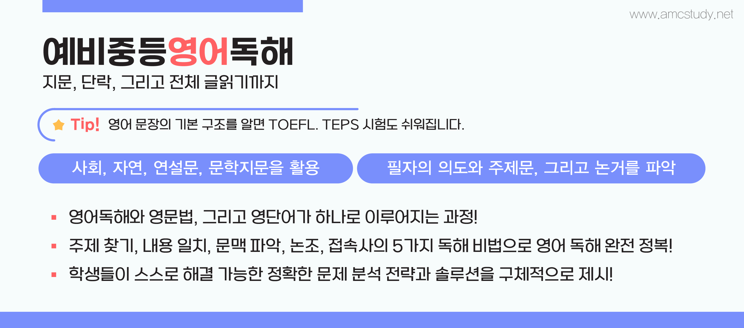 독해와 단어의 연관성 때문에 그렇습니다. 저희 amc학원에서는 예비중학생이 될 초등5학년,6학년