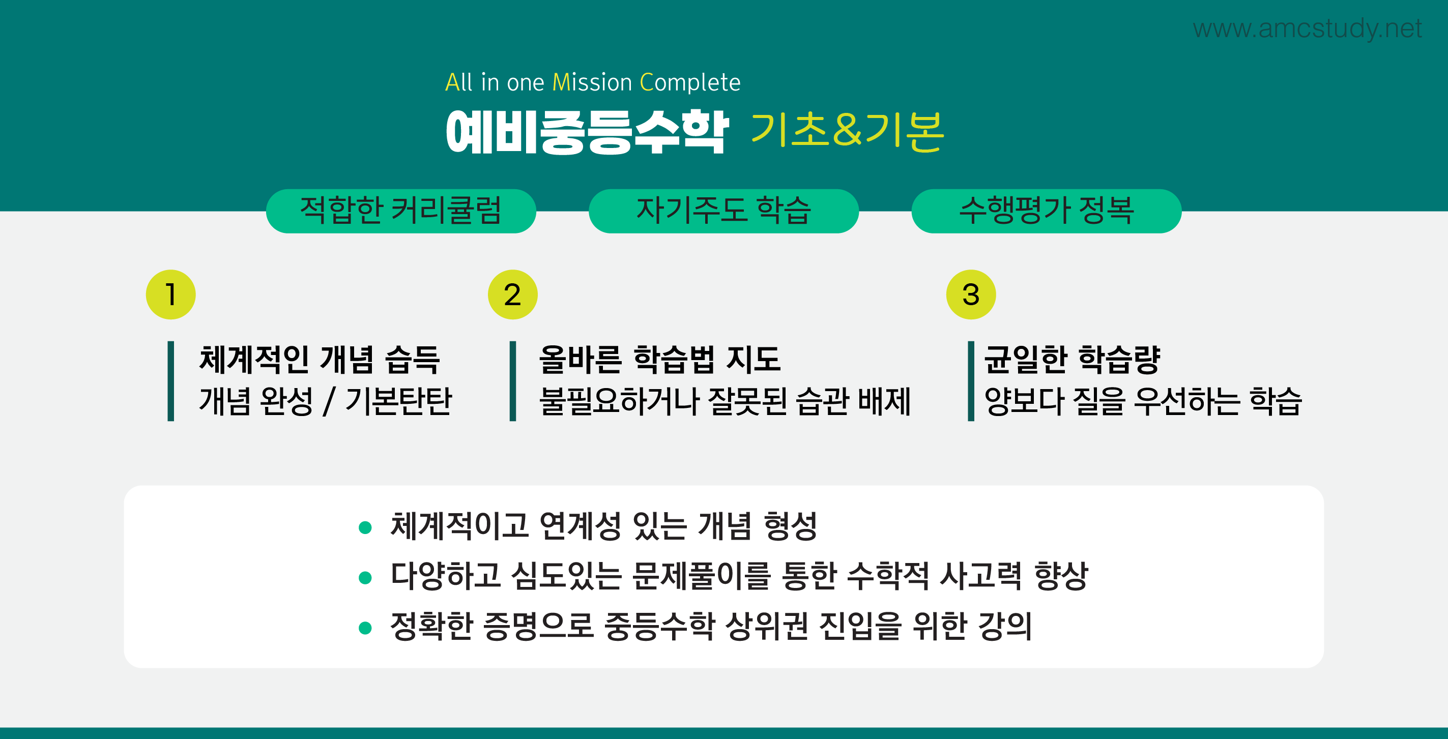 저희 amc가 생각하는 중학수학에 대한 최강의 솔루션은 수업을 수강하는 6명 ~ 8명의 학생들이 수업에