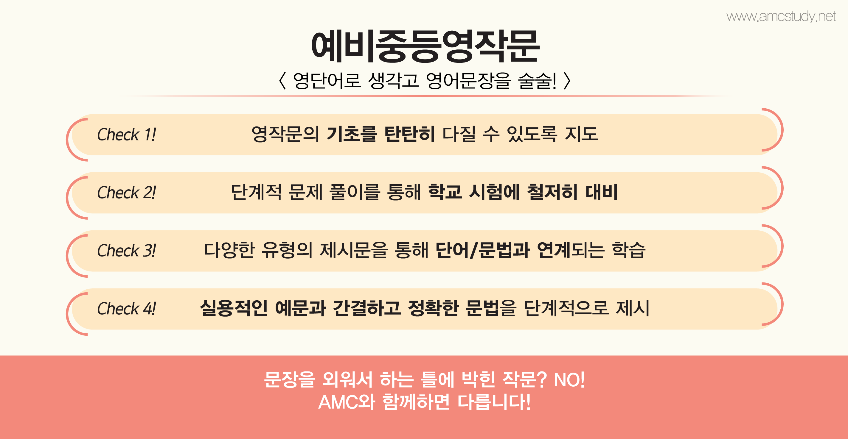 하는 예비중학생 및 초등학교5,6학년 학생 여러분 안녕하십니까? amc학원의 영어강사 최샘입니다. 오늘