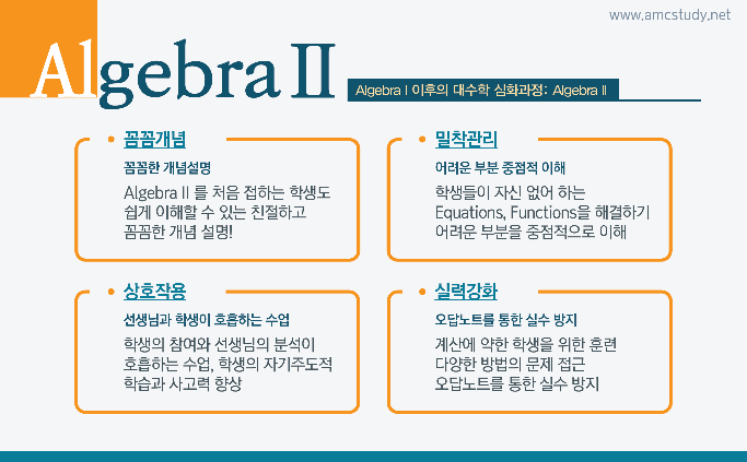 행이 되고 계시는 지요?? algebra2는 algebra1의 선형수학에 대한 연계성을 갖는 비선형 다차식을 기반