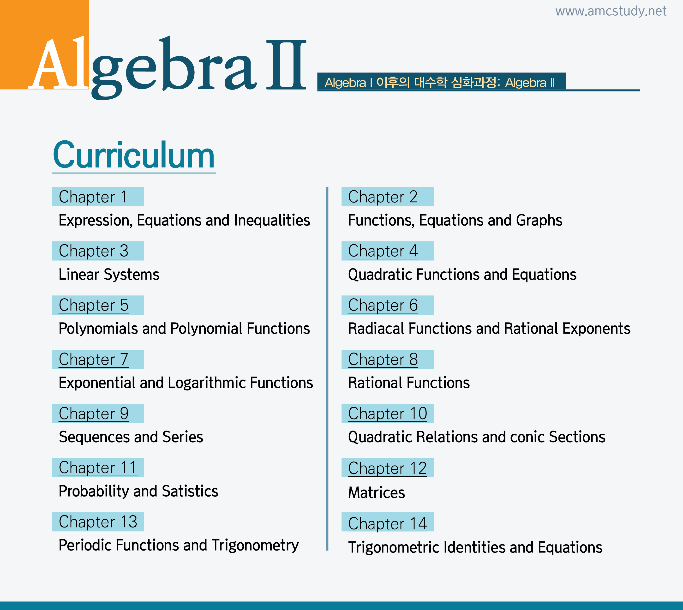 행이 되고 계시는 지요?? algebra2는 algebra1의 선형수학에 대한 연계성을 갖는 비선형 다차식을 기반