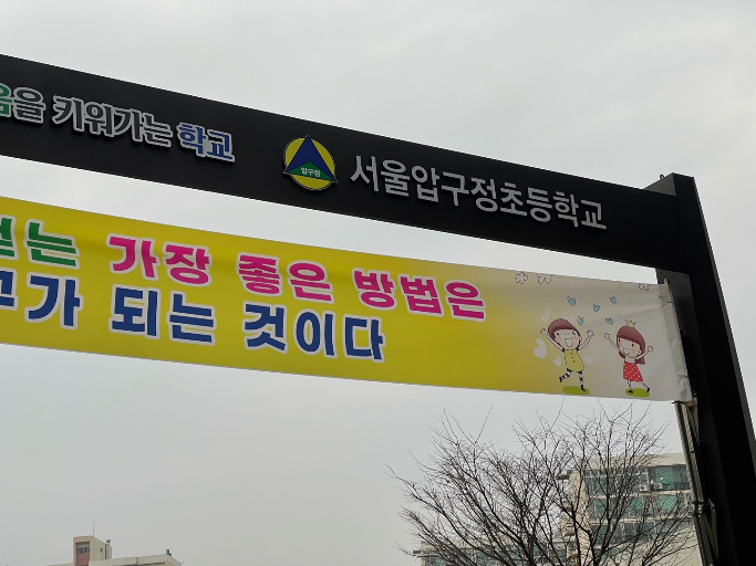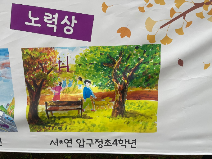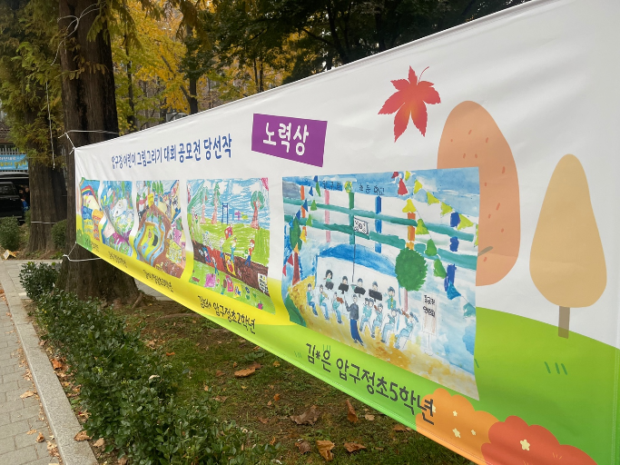 며 성과가 뛰어난 학생들에 대한 전시회가 압구정초등학교의 정문앞에서 있었기 때문에