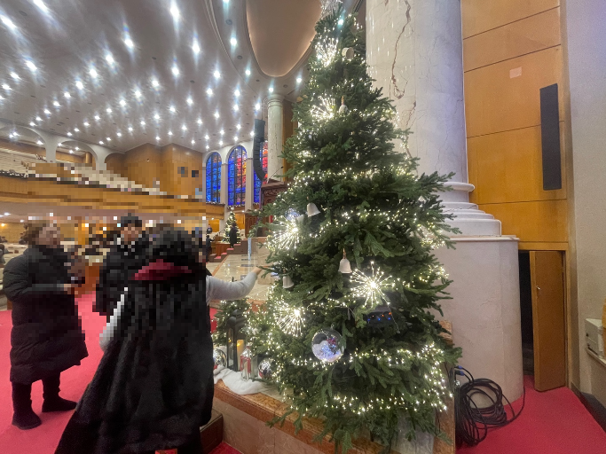 예배가 끝나고 본당 실내에 있는 크리스마스 트리를 구경해 봅니다.