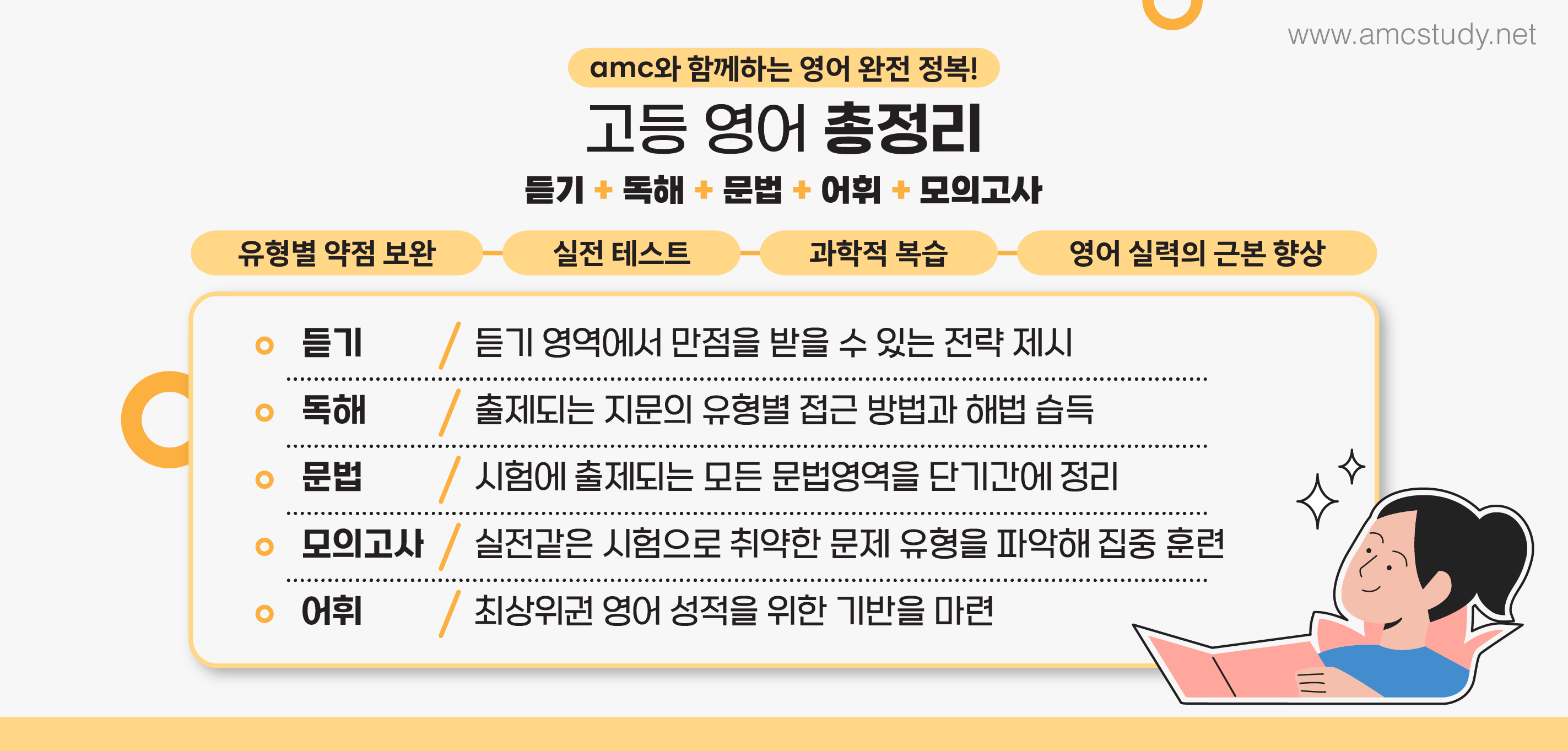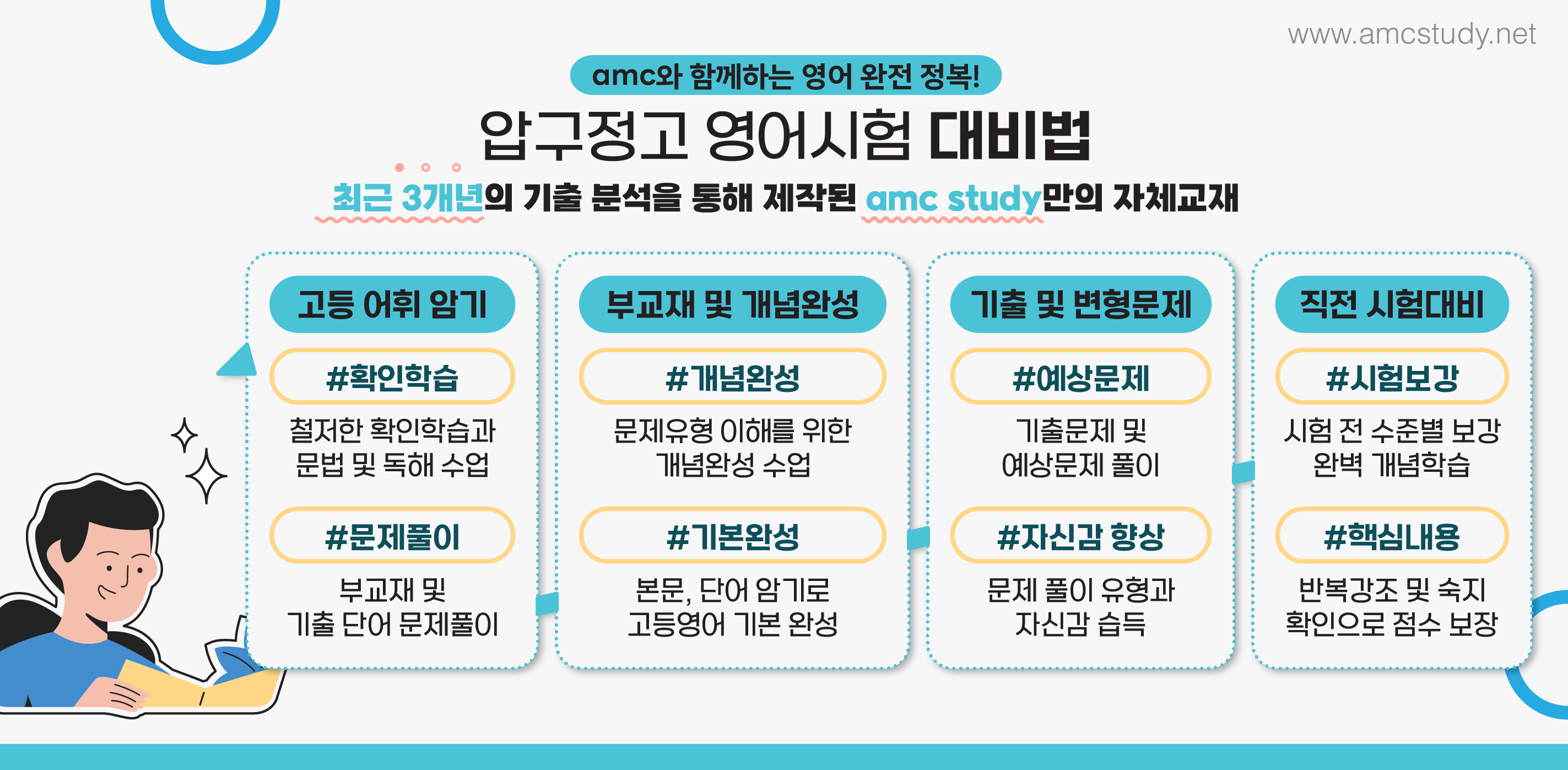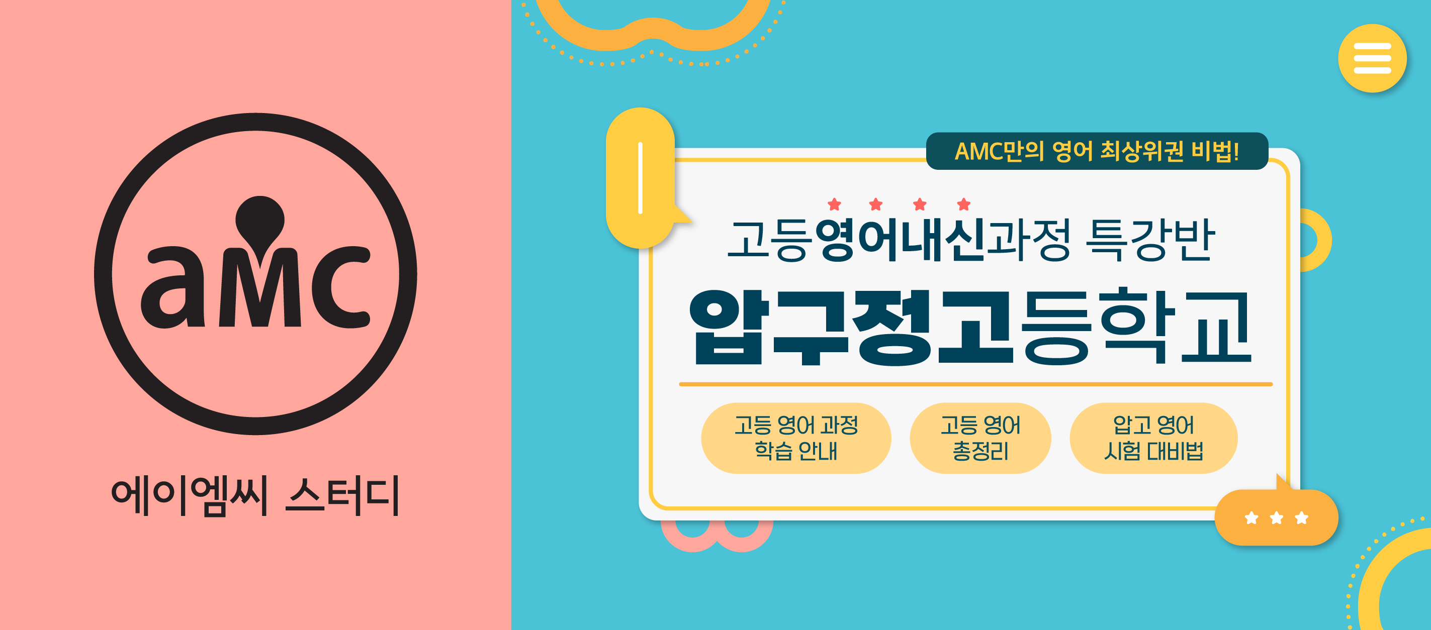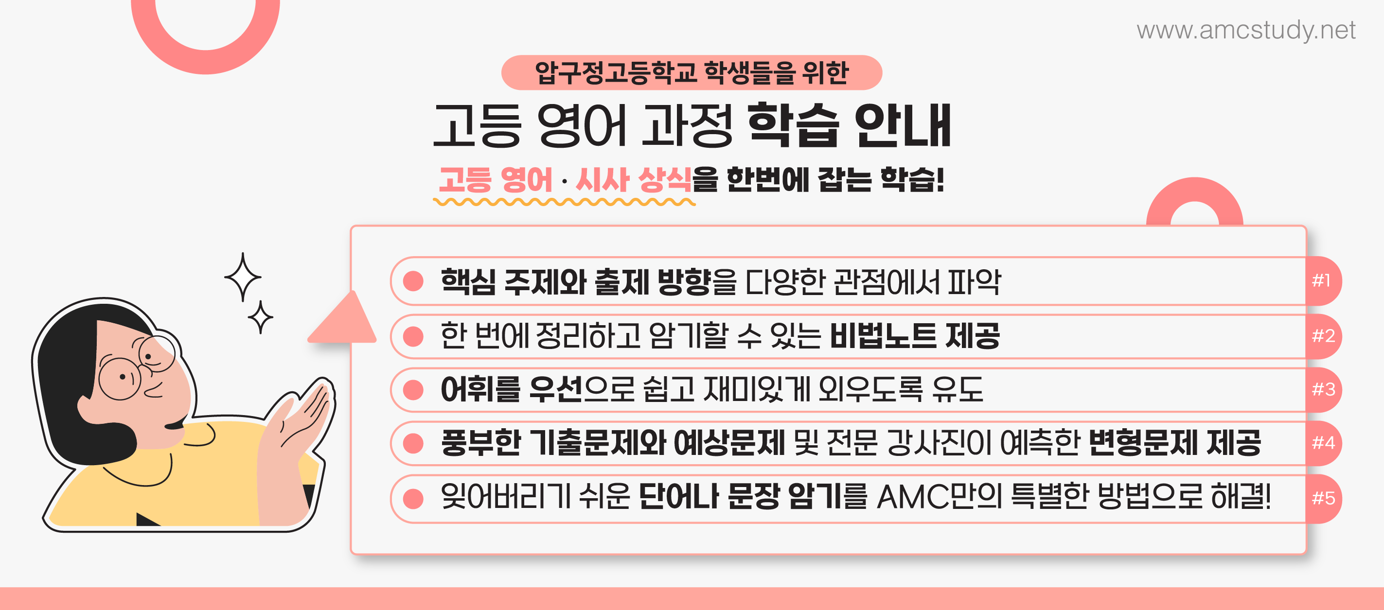 까요? 저희 에이엠씨학원에서는 압구정고내신영어에 대한 커리큘럼의 특화를 통하여