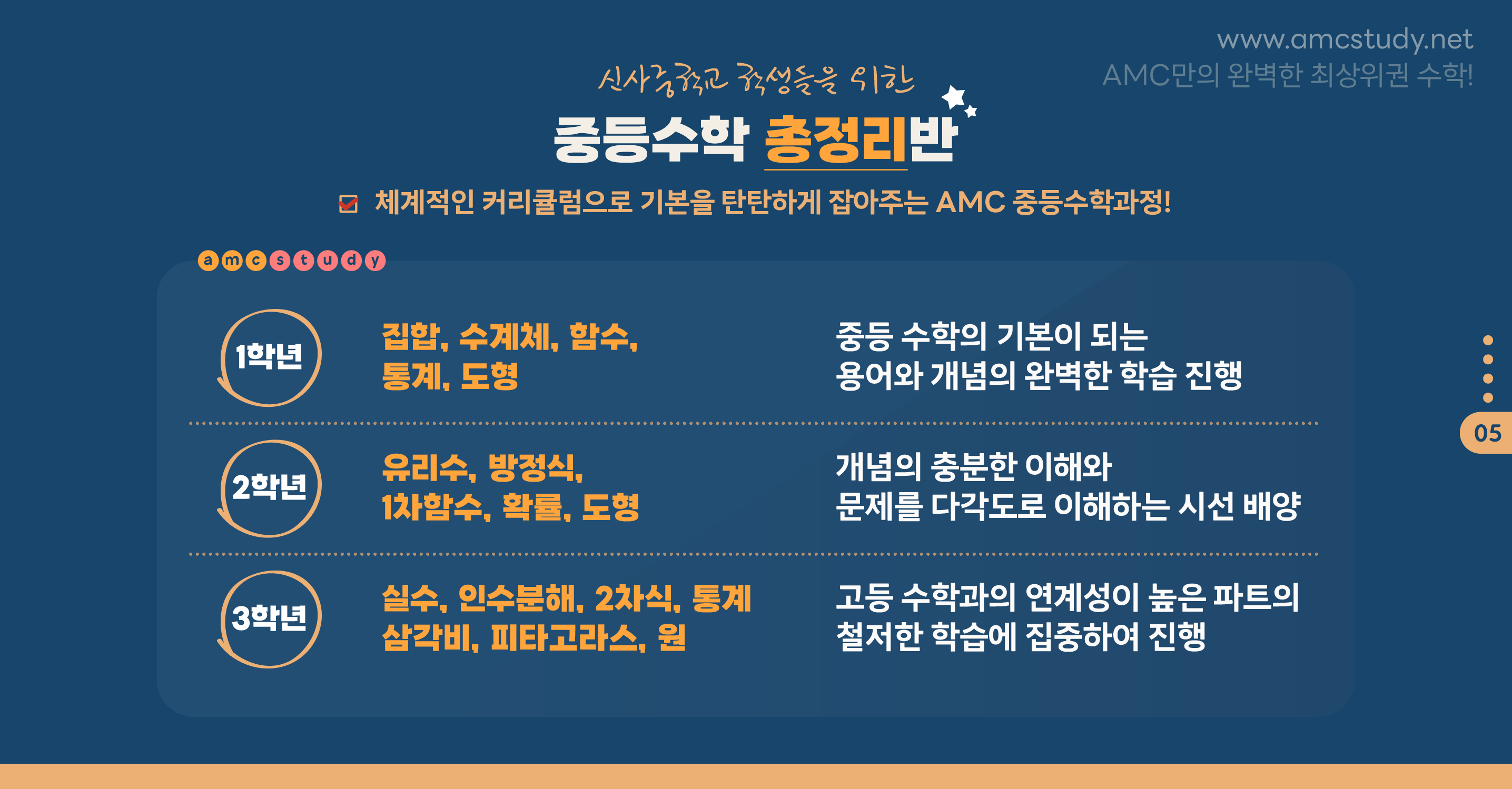신사중학교 내신수학 특강반 월수강료: 45만원