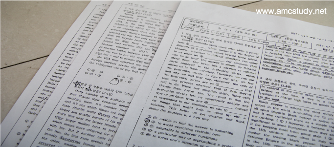 수능영어와 같은 난이도 있는 영어시험의 독해, 듣기, 쓰기, 어법 그리고 어휘문제들에