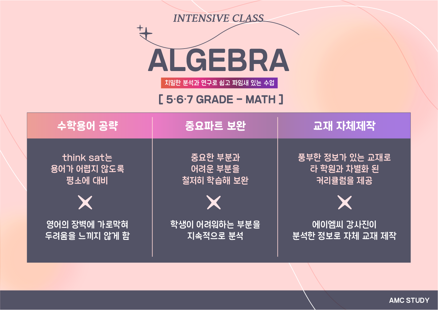 amcstudy학원은 국제학교의 학생여러분들을 위한 algebra1, algegbra2, amc8, amc10,