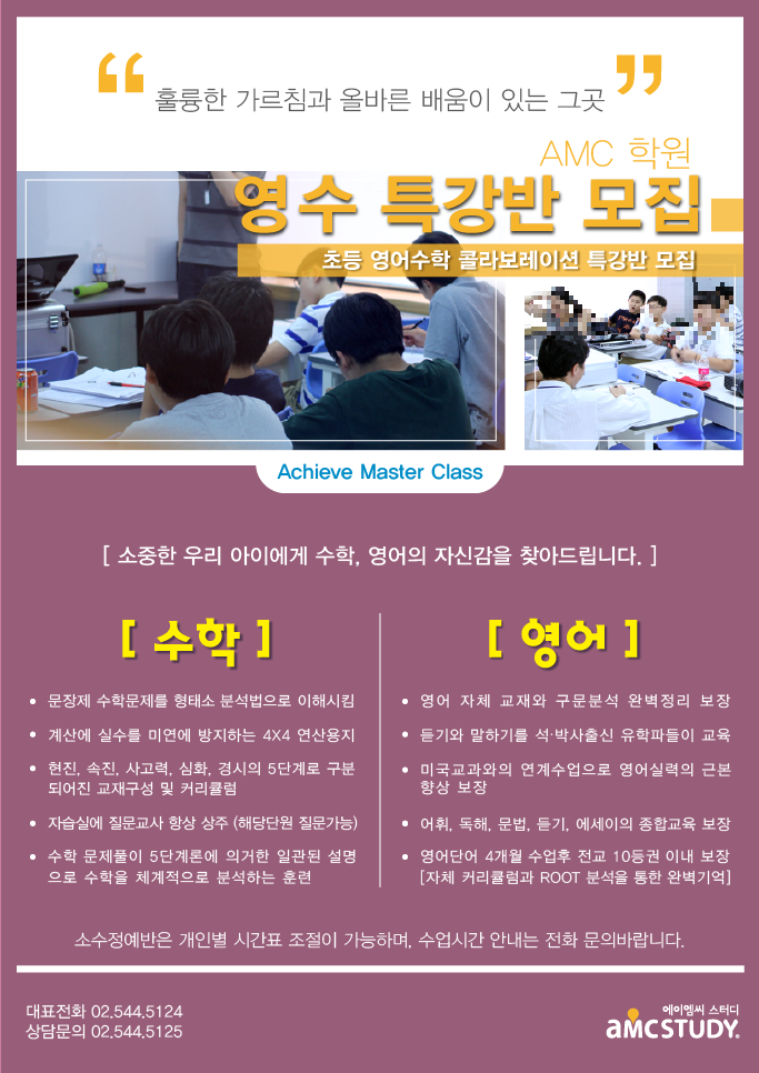 다. 저희 amc학원은 신구초의 학생들을 10년 이상 지도해 오면서 학생들에게 있어서 개