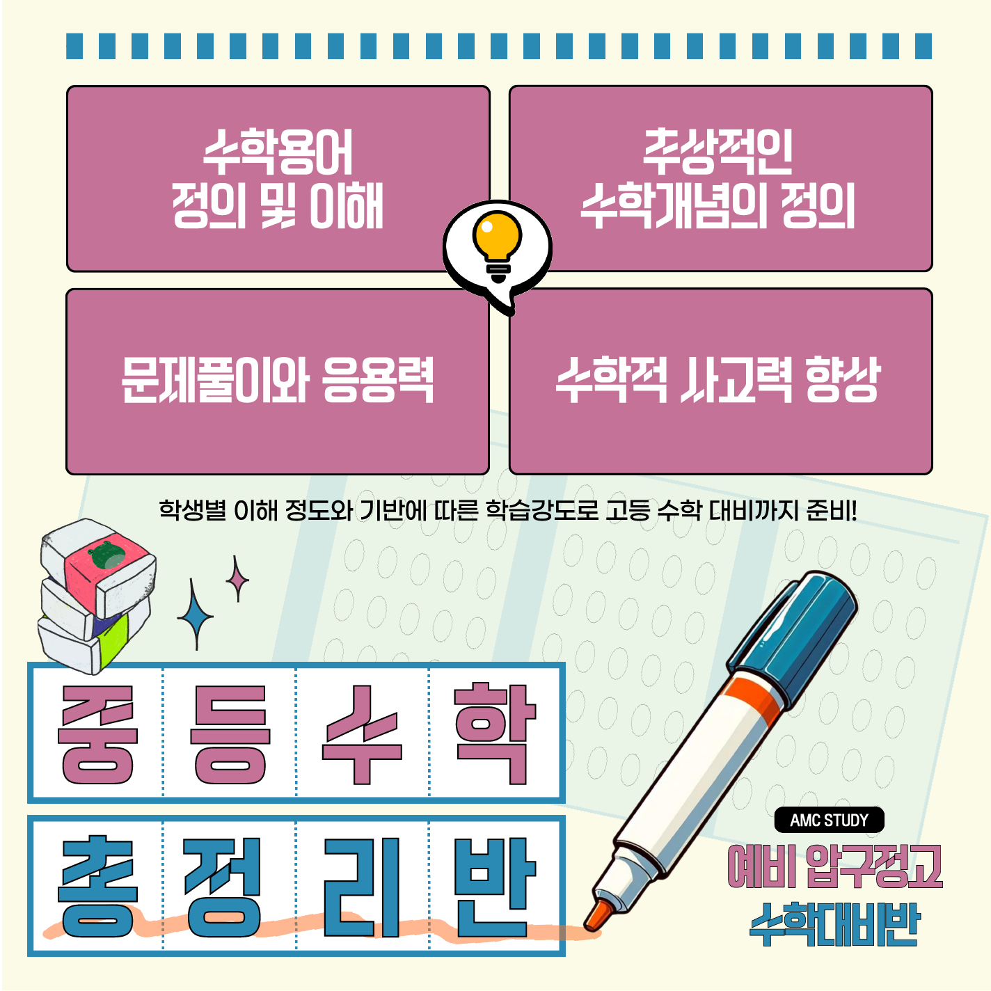 저희 에이엠씨학원은 압구정중내신수학과 앞으로 압구정고에 입학하게 되는 예비압구정고의 학생들을
