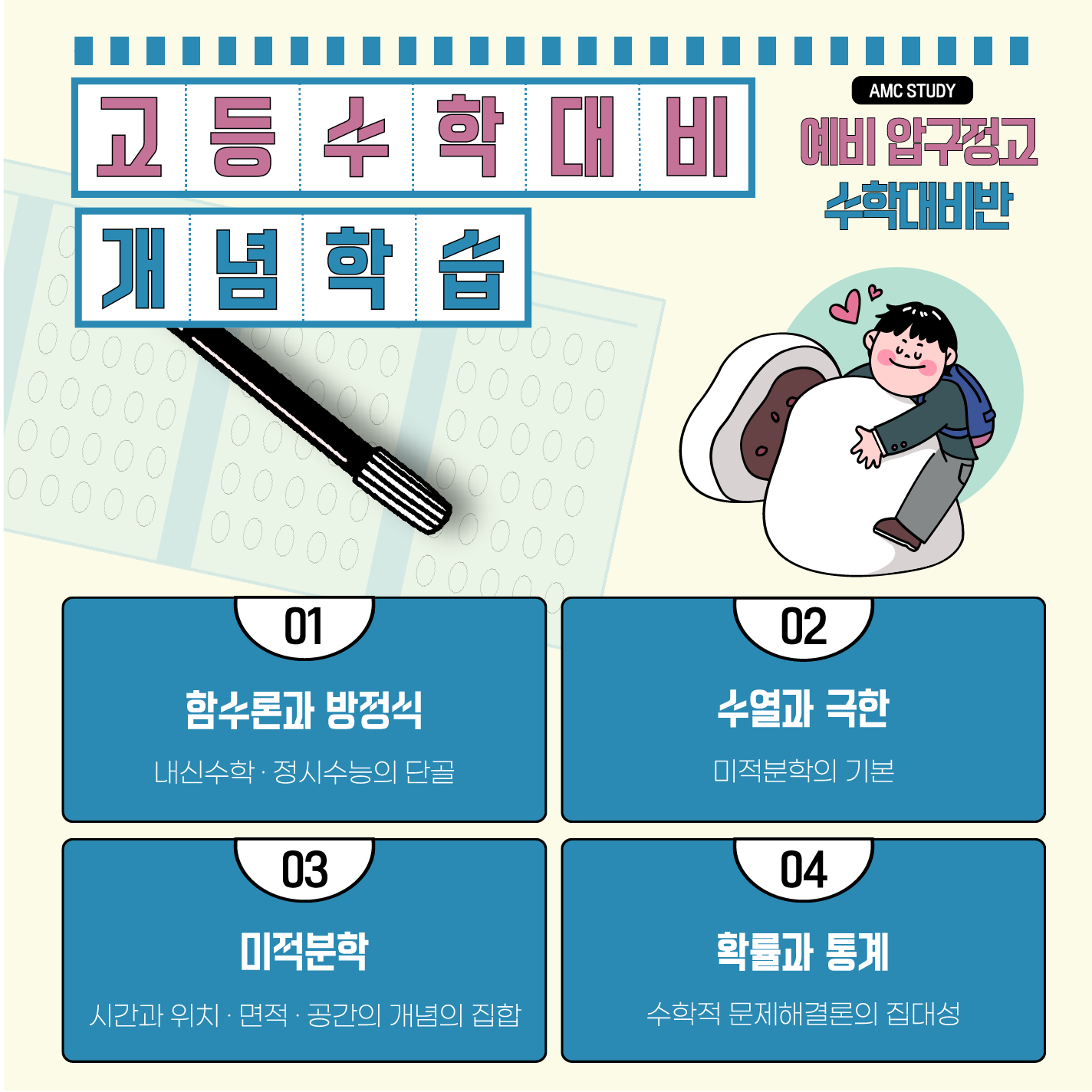 압구정고내신수학을 공부하실수 있도록 커리큘럼을 구성하게 되었습니다. 특히, 고등수학의 공부에 있어