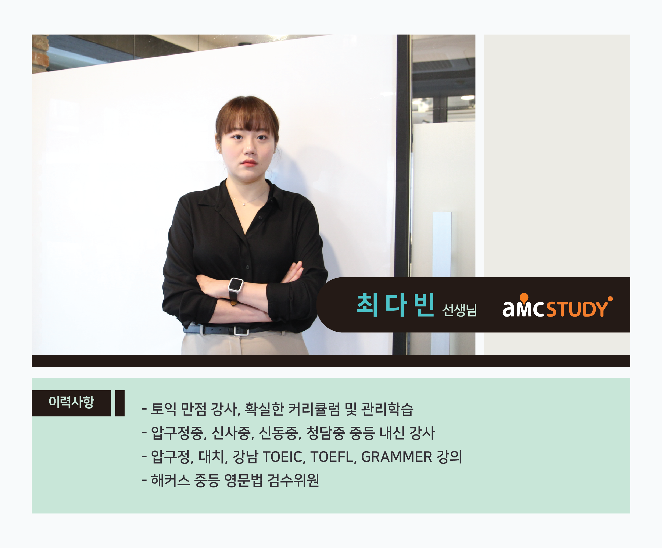 반드시 저희 amc학원의 영어커리큘럼을 고려해 주셔야만 하는 것입니다. 저희학원은 다년간 압구정중내