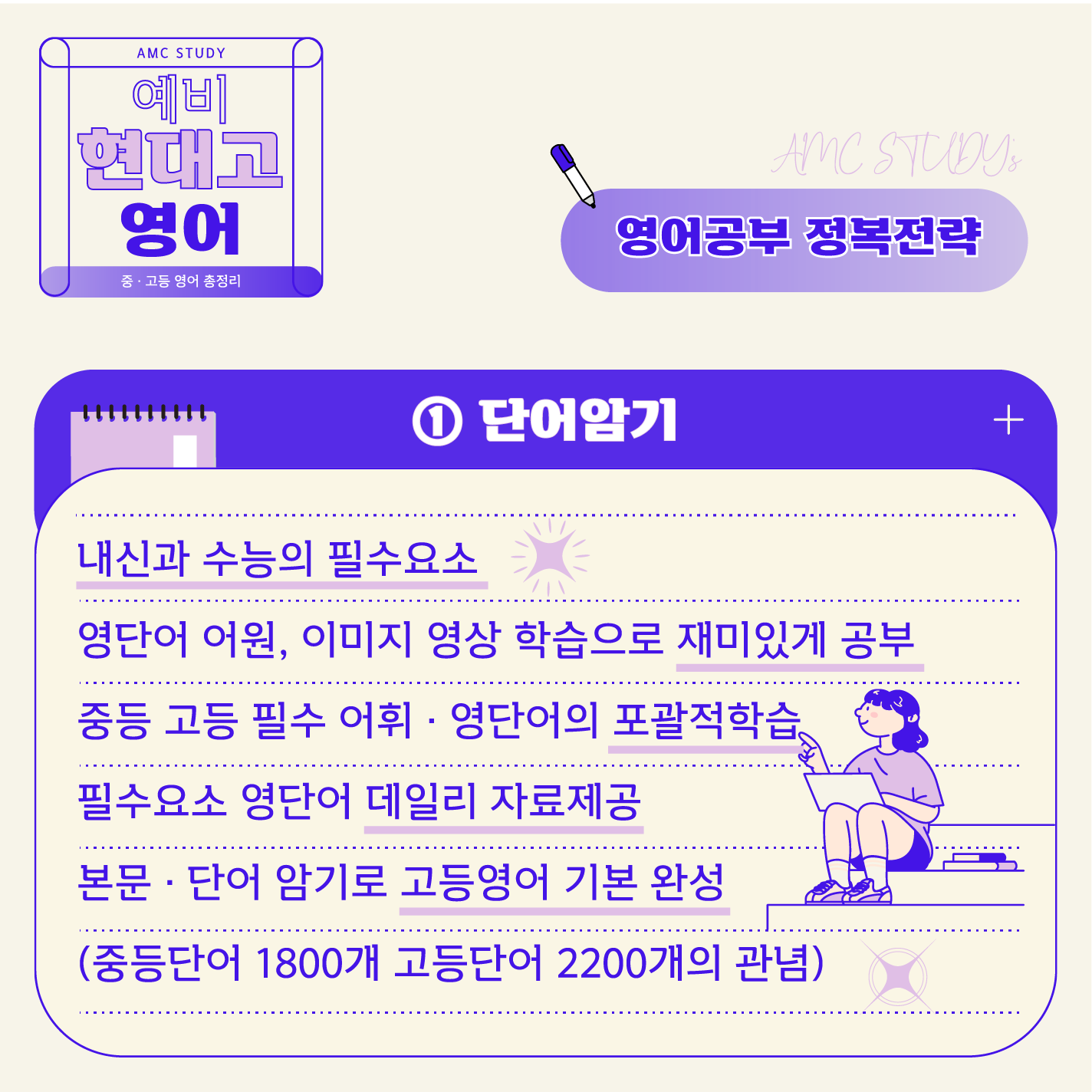 로 진학을 한이후 평가원 수능영어시험과 현대고내신영어시험의 준비를 위한 최고의 자산이 되어줄것이고