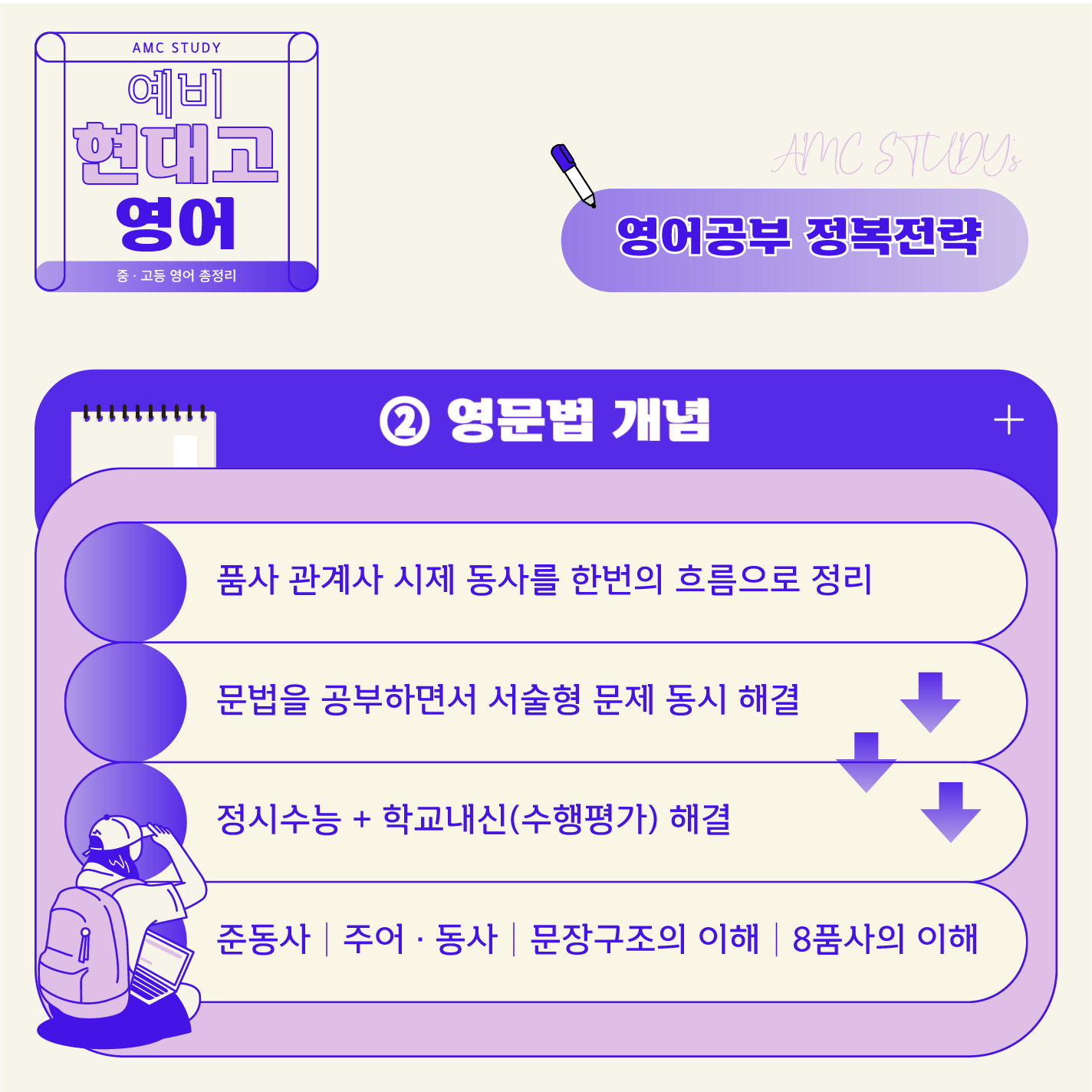 중영어학원에서 예비현대고에 진학하게 되는 학생들을 위한 영어공부를 준비하시는 학생여러분들께서는