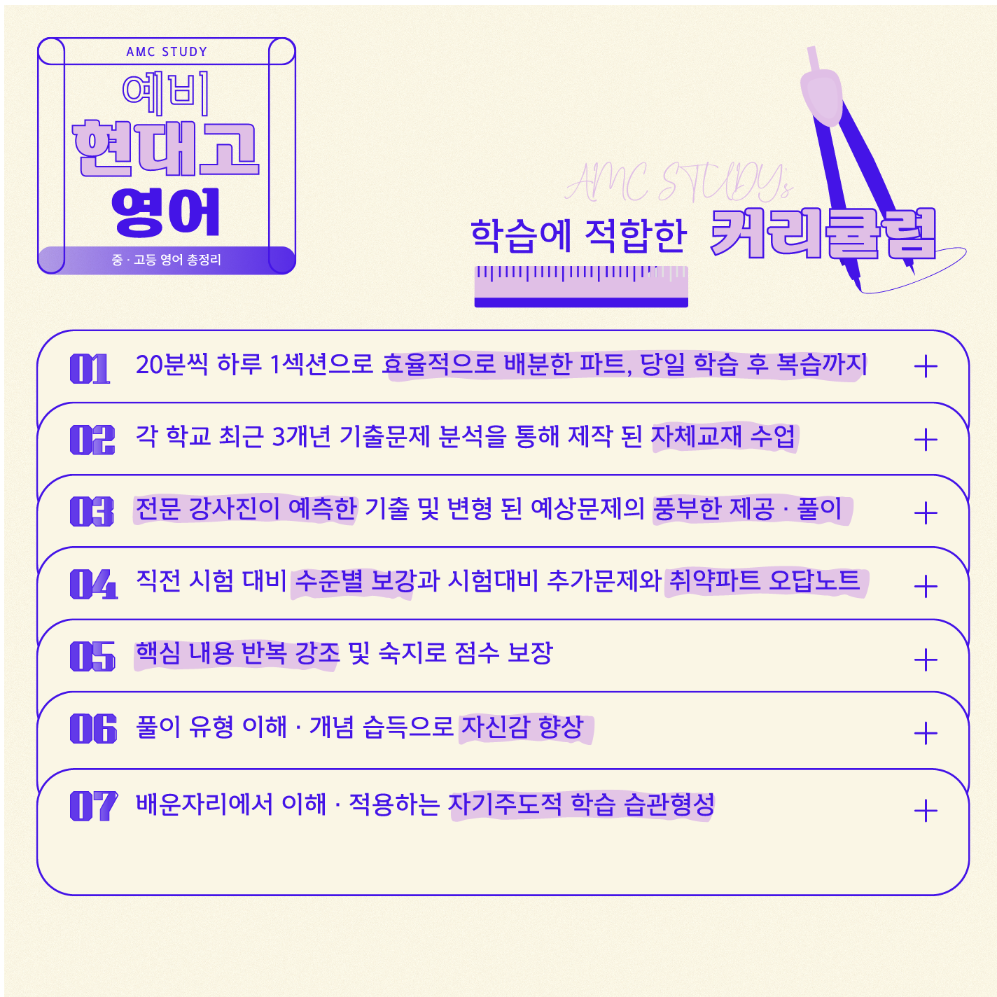 과를 보실 수 있도록 확실한 커리큘럼을 보여드리고자 합니다. 저희 에이엠씨학원에서는 우리 현대고의