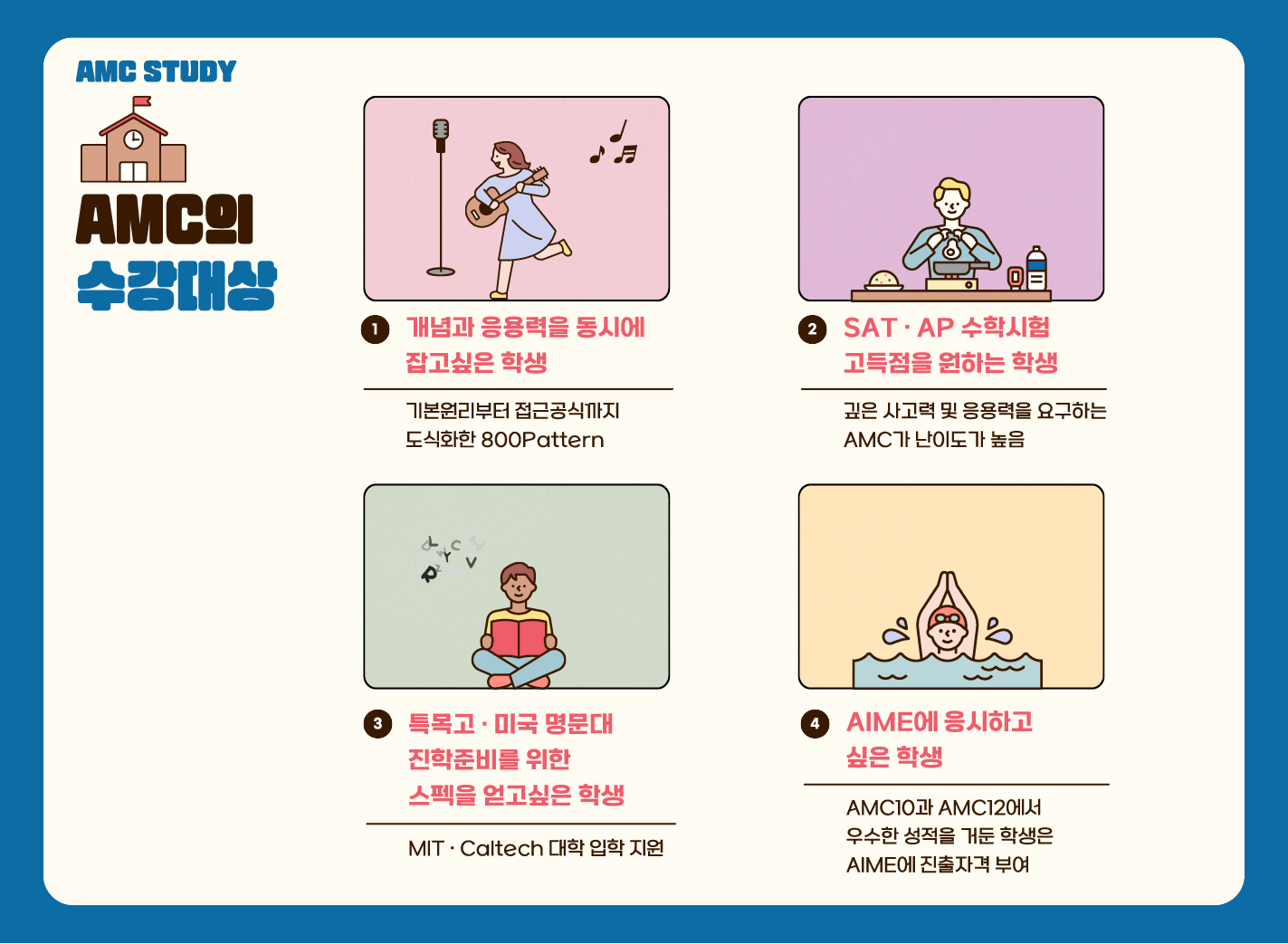 큼은 17년 이상의 시간을 통해 학생들과 미국수학경시 amc8, amc10, amc12, AIME라는 주제로 함께