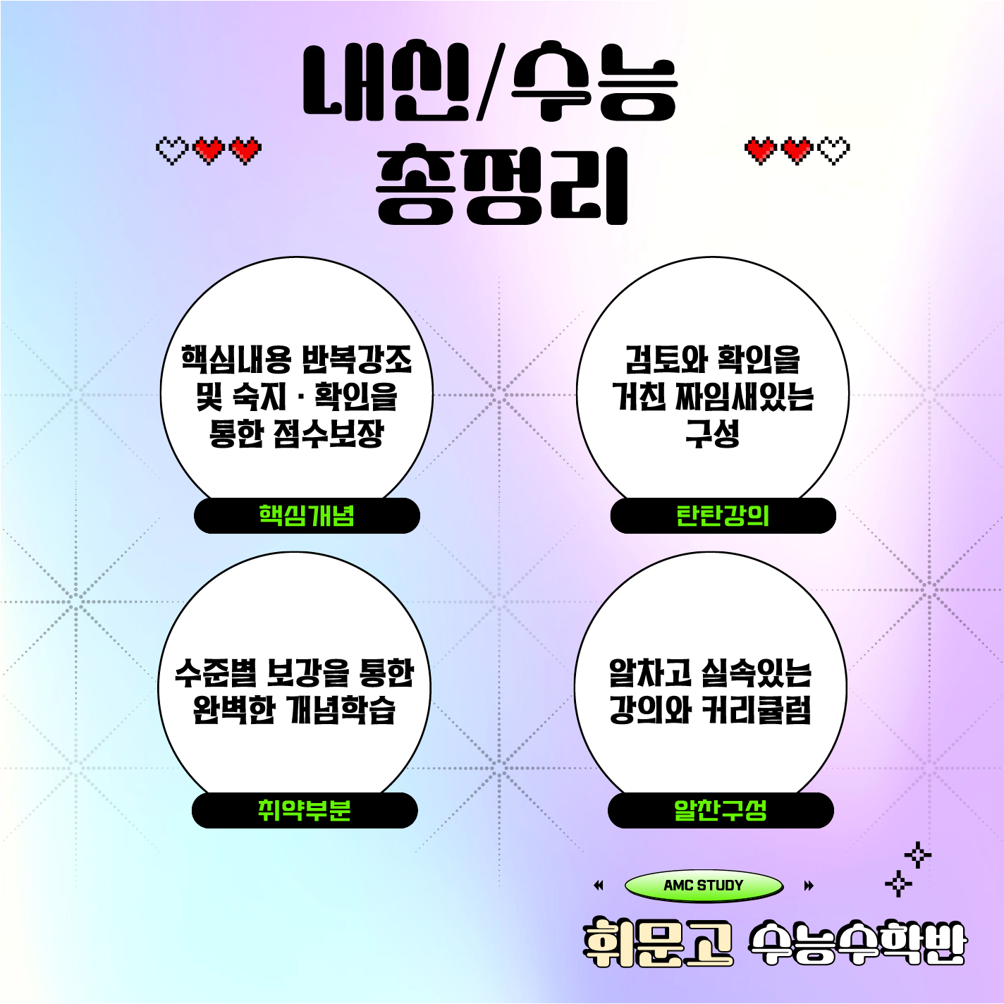 저희에이엠씨학원은 우리휘문고학생들의 내신수학성정과 휘문고정시수능수학의 준비를 통해서 해마다