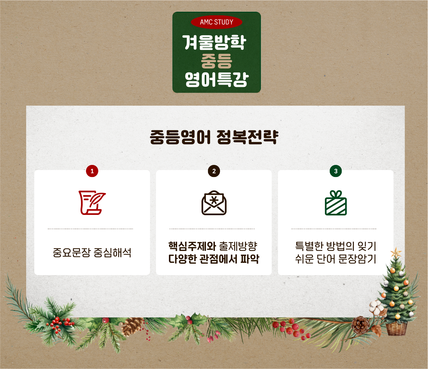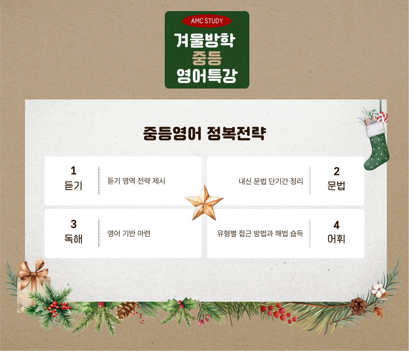 대해서 저희 amcstudy에서는 중학영어겨울방학특강을 준비하게 되었습니다. 이번겨울방학을 통해서