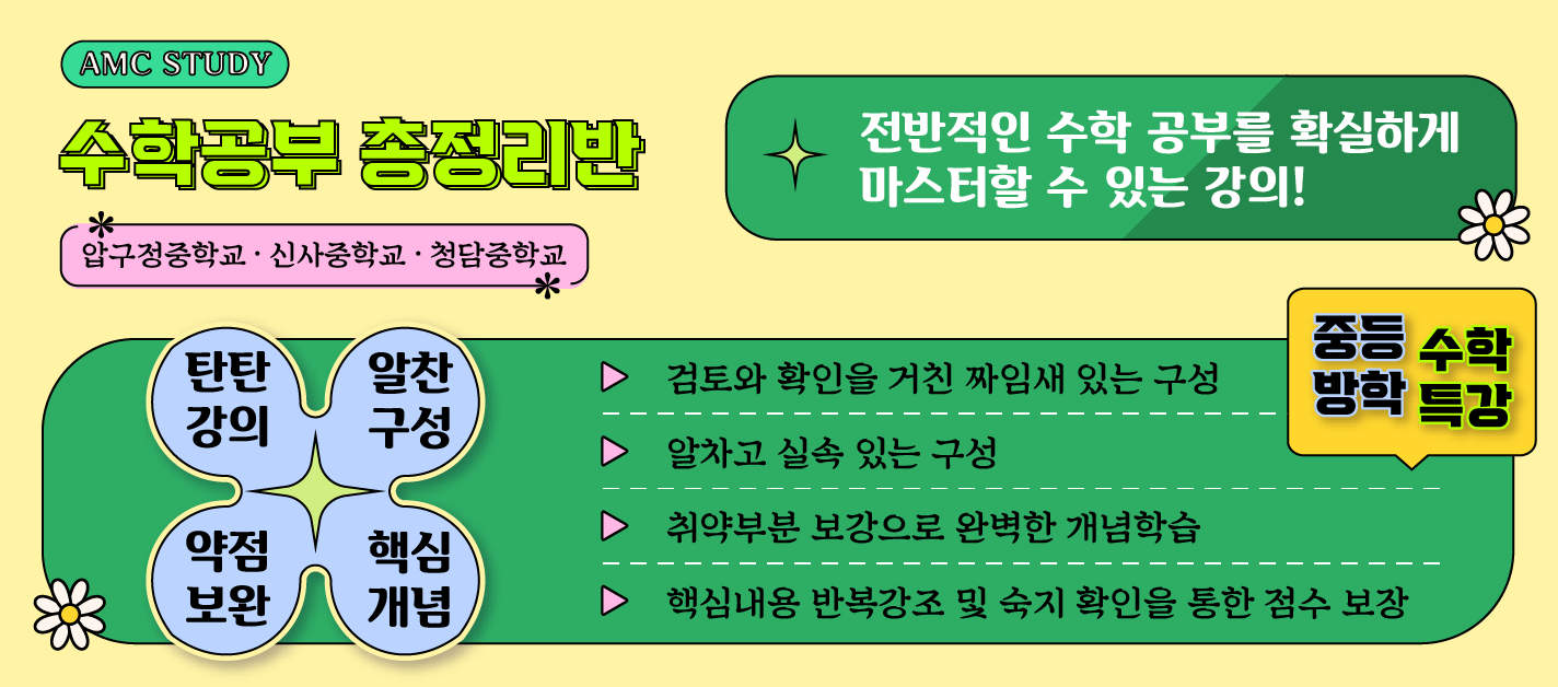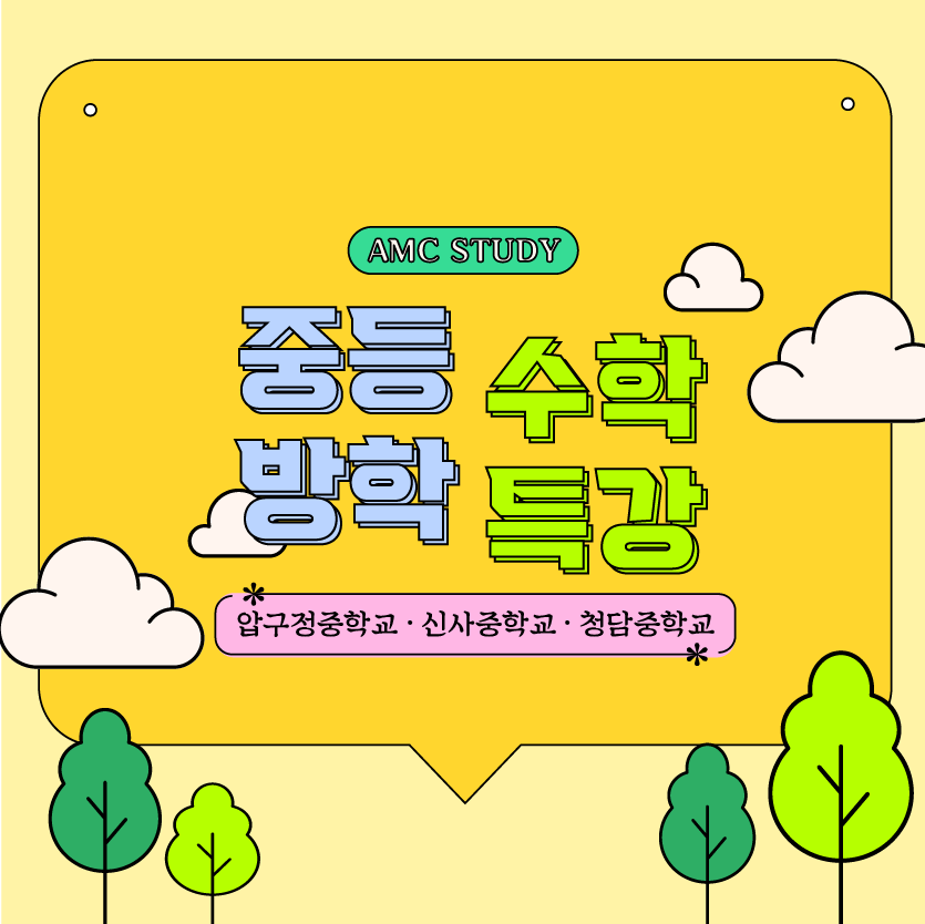 안녕하세요~! AMC학원 입니다. 2025년 여름방학을 맞이하여 압구정권역의 중학생
