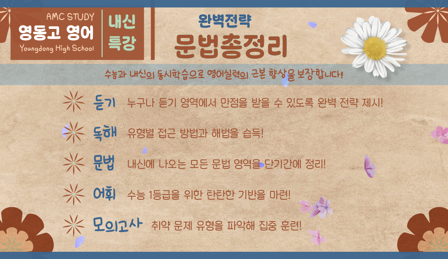 해보셨나요? 그래서 저희 AMC Study학원에서는 영동고 학생들을 위한 영어 내신특강을
