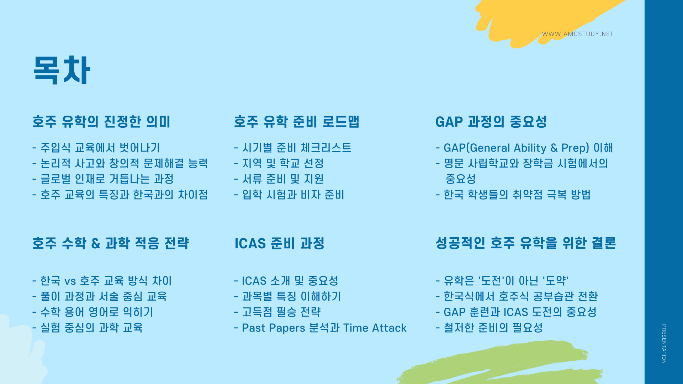 전략적 공부법 **[Strategic Roadmap: 호주 유학의 A to Z]**를 새롭게 제안해 드리고자 합니다.