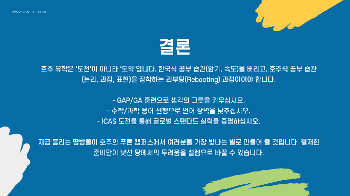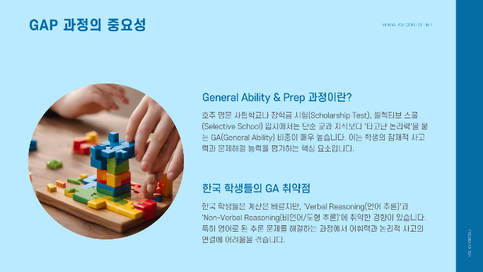 선행 학습이 아닌, 두뇌를 호주식 사고로 리부팅하는 GAP 훈련만이 호주 최상위권 진입의 지름길입니다