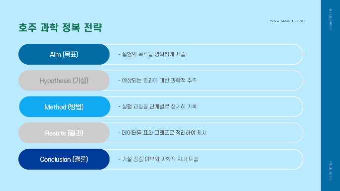 통제하며 실험으로 증명하는 **'꼬마 과학자'**가 되어야 합니다. 호주 과학의 핵심은 Lab Report