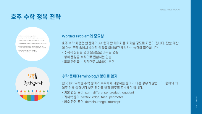 한국 수학/과학 용어를 호주식 영어 용어(Terminology)로 완벽하게 변환하여 탑재해야 합니다.
