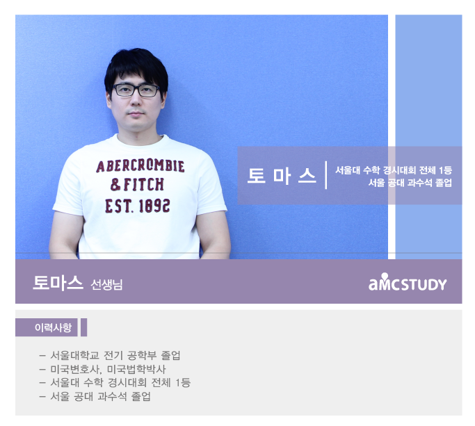 amc12, amc10을 만점으로 이끌어 주시는 Tomas선생님 이십니다.