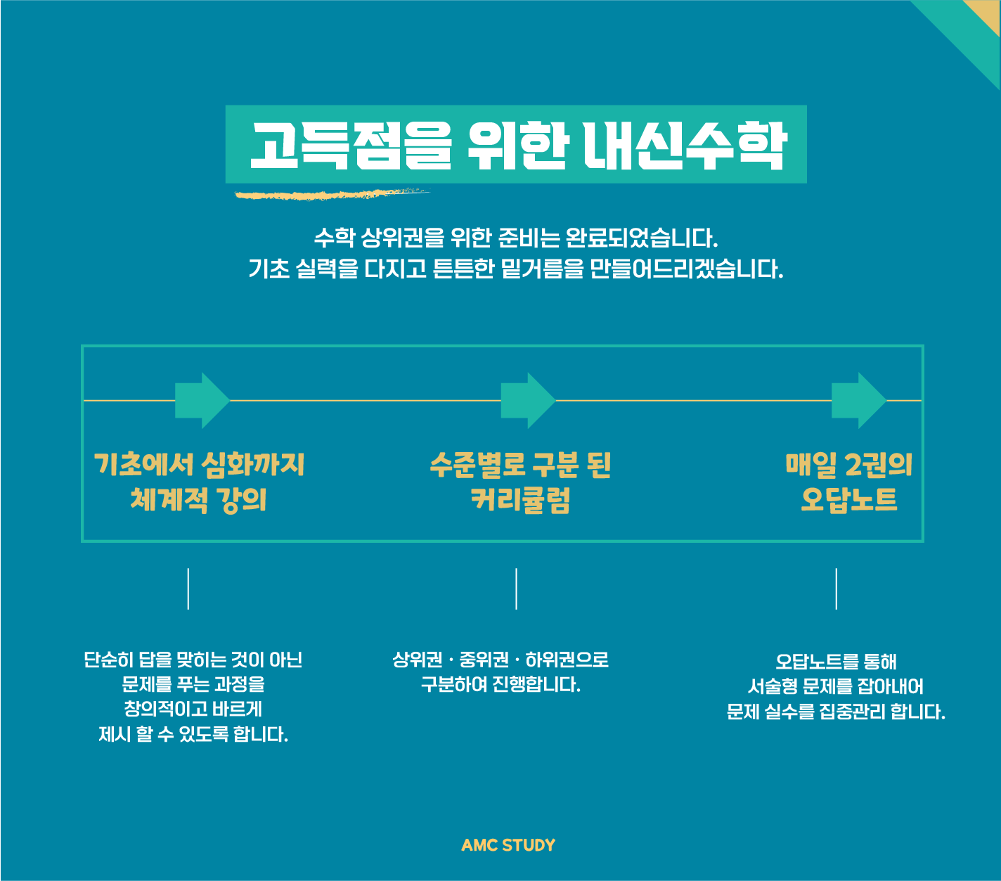 니다. 수학이라는 커다란 산이 걱정되신다면 저희와 함께하십시오. 저희가 확실한 솔루션을 드립니다.