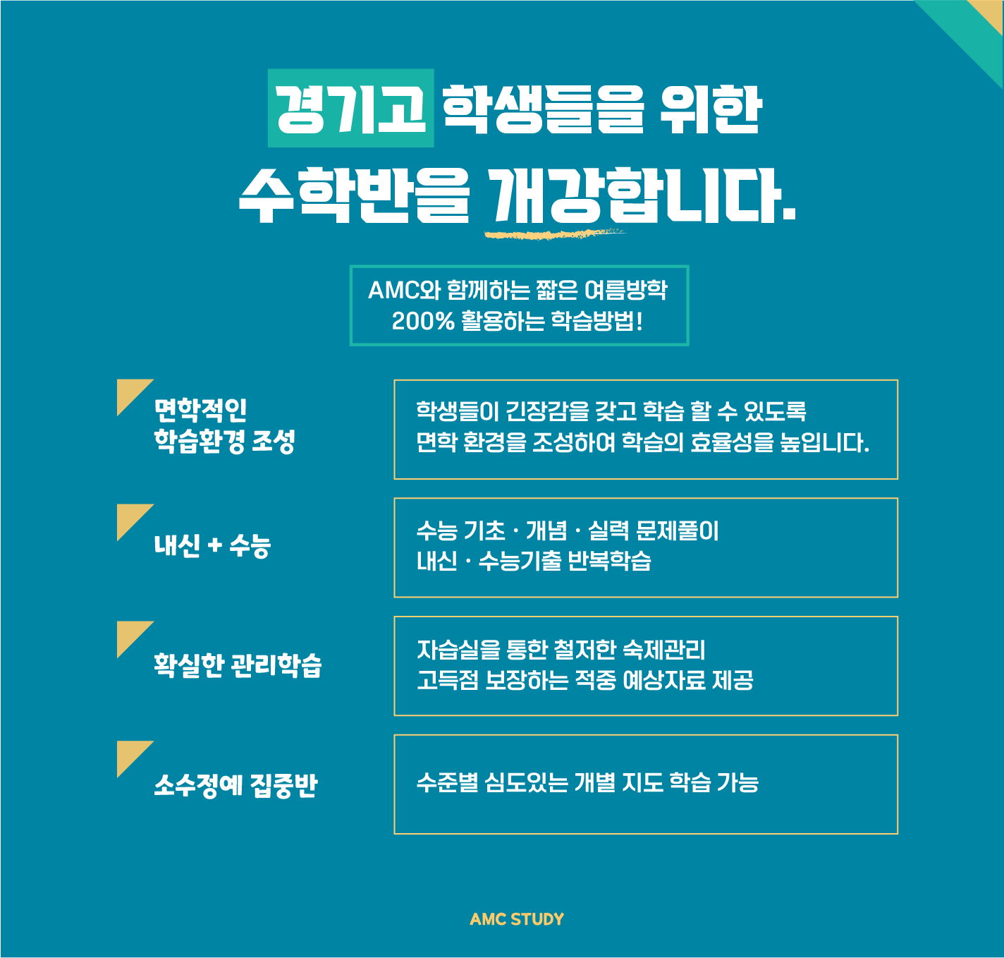 저희 원은 항상 경기고의 학생여러분들에 대한 상황을 이해하고 학생여러분들의 내신 수학과 정시
