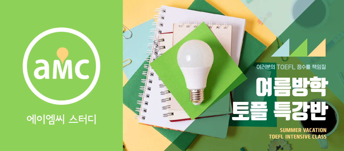 저희 amcstudy는 여름방학을 맞이하여 TOEFL 특강반을 준비하였습니다