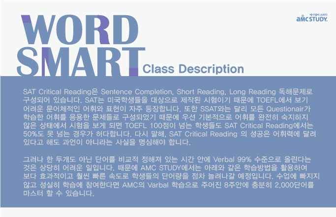 This is amc teacher from amcstudy. Today, we would like introduce our "Word Smart Class"