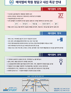안녕하십니까?? 청담고 학생 및 학부모 여러분 AMC학원의 AMC샘 입니다. 오늘은 청담고학생들을 위한 영어 내신강좌 및 수능영어 강좌에 대해서 안내해 드리겠습니다. 영어내신과 수능영어에서 고득점을 받기를 위해서는 검증된 강사에 의한 수업과 , 학생여러분들의 그날,그날의 학습에 대한, 모의 test와 영어단어의 암기, 문법 소단원 test 관리학습이 필요합니다. 저희 AMC학원의 자랑인, 당일 어휘력 TEST !! EBS, 메가스터디 출신 강사진이 여러분들께 외우기 쉽고, 적중도 높은 단어를 매일매일 제공해 드립니다. 또한, 매일의 어휘TEST를 통하여, 여러분들의 어휘력을 단단하게 만들어 드립니다. 매주 있는 모의TEST를 통하여, 여러분의 독해 그리고 문법 실력의 향상 또한 객관적으로 확인을 해드립니..