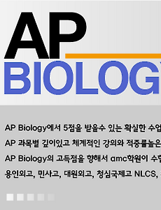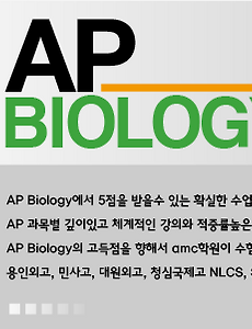 안녕하십니까?? 용인외고, 대원외고, 민사고, 한영외고, SIS, KIS,SFS, APIS의 학생여러분 및 학부모여러분 amcstudy의 amc샘 입니다. 오늘은 AP Biology 수업에 대해서 안내해 드리겠습니다. 2013년 부터 새롭게 개정된 Ap Biology 수업에 맞추어서, 전체시험의 목표인 Science Practice 강조 측면에서 볼때, Free Response Question 에서 보다 통합적이고 분석적이 문항의 출제 비율이 높아지게 되었습니다. amcstudy 는 바뀐 시험내용에 맞추어서, amcstudy 만의 자체 교재를 이용하여, 학생여러분들의 대비능력을 고득점을 받으실수 있도록 높여 드리고 있습니다. AP Biology를 준비하는 학생 및 학부모여러분, SAT2 와 달리 AP시험..
